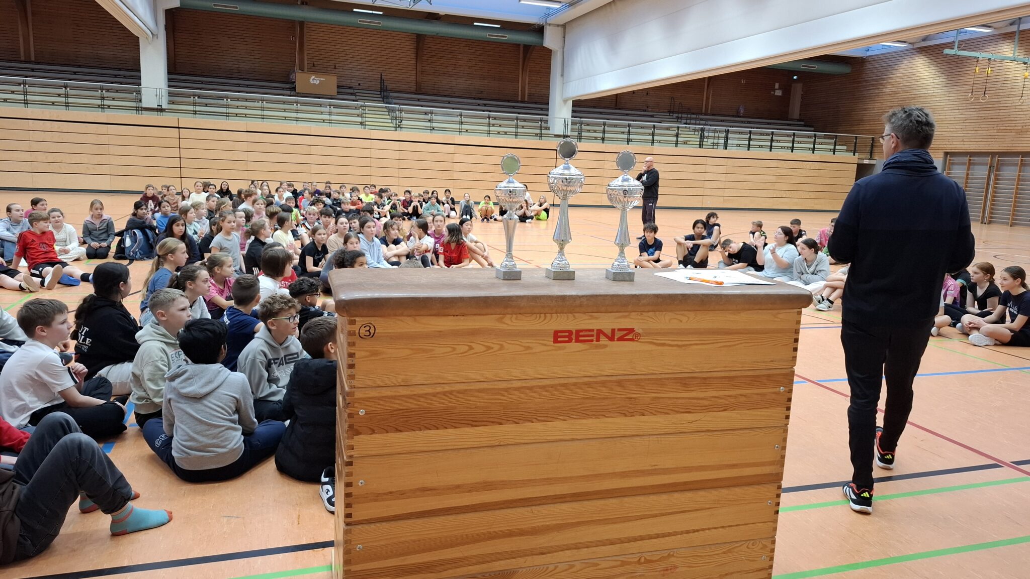 Jede Klasse stellte ein Mädchen-, ein Jungs- sowie ein Mixed-Team. Diese traten in der Turnierform „Jeder gegen Jeder“ gegeneinander an. Die Mannschaften versuchten durch einen Sieg oder ein Unentschieden möglichst viele Punkte für ihre Klasse zu sammeln. In den 10 Minuten Spielzeit gab jeder sein bestes um möglichst viele Tore zu schießen. Es blieb spannend bis zum Schluss.